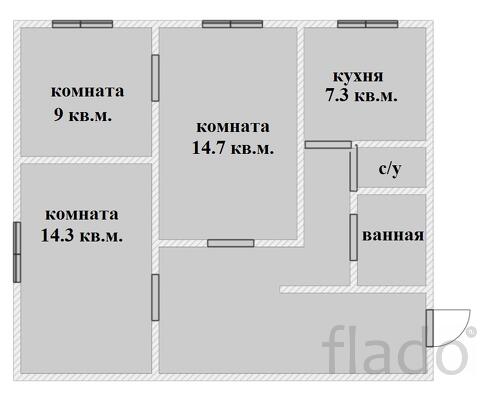 Светлая и просторная квартира, общей площадью 65.3 кв.м., две изолированные спальни и просторная гостиная, а также кухня 7.3 кв.м.
