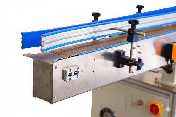 Ширина конвейерной линии может быть адаптирована под специфику тары заказчика для обеспечения максимальной устойчивости продукции при перемещении. В основе конструкции используется надежная цепь из полиацеталя (POM), обладающая низким коэффициентом трения и высокой износостойкостью.