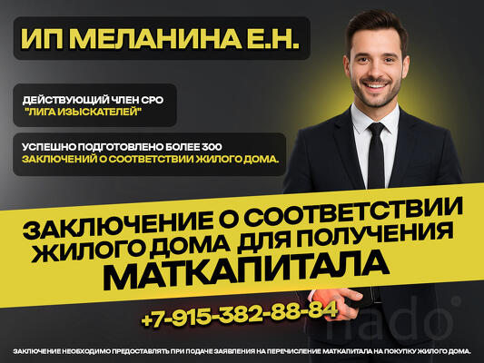Подготовка заключения о соответствии жилого помещения, являющегося жилым домом (частью жилого дома), в том числе домом блокированной застройки, требованиям, предъявляемым к жилому помещению, и его пригодности для проживания.