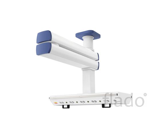 Потолочная двухплечевая медицинская консоль Кадуцей (Caduceus) C2-A с 2-мя поворотными плечами, длиной до 1200 мм каждое, и вращающимся горизонтальным шкафом источников медгазов и электропитания, позволяет эффективно организовать рабочее место медицинского персонала с возможностью свободного доступа к пациенту. Эргономичное использование конструктива шкафа консоли CADUCEUS C2-A позволяет максимально удобно разместить электрические и слаботочные розетки, а также разъемы быстрого соединения медгазов и вакуума. Совместимость разъемов с медицинской аппаратурой любой марки позволяет использовать подвесную конструкцию в палатах экстренной помощи, операционных и родовых залах, а также в палатах интенсивной терапии. Для подключения медицинских электроприборов к линии заземления (технологического и функционального) консоль оснащена разъемами заземления. Для крепления дополнительного оборудования шкаф источников медгазов и электропитания оснащается медицинскими рельсами с несущей способностью каждого до 25 кг. Угол поворота шкафа источников медицинских газов до 320 градусов, а также удобные эргономичные ручки в нижней части корпуса обеспечивают мобильность универсальной подвесной системы CADUCEUS (Кадуцей) C2-A, что делает ее использование максимально удобным.