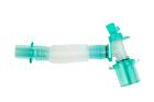 Соединитель коннектор для дыхательного контура угловой вертлюжный Дляподсоединениядыхательногоконтуракпациенту.Угловой115град.шарнирный соединитель,изготовлен из прозрачного пластика, с разъемом со стороны пациента 22M/15F, с гофрированной, удлиняемой трубкой с регулируемой длиной в пределах 130-220мм, изготовленной из полиэтилена с прозрачным пластиковым коннектором со стороны контура 22F