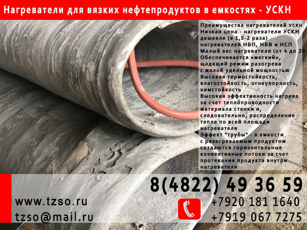 Назначение. Универсальный стеклокомпозитный нагреватель (УСКН) предназначен для разогрева и поддержания температуры вязких нефтепродуктов, битума, гудрона, мазута, масла, агрессивных диэлектрических сред в емкостях, хранилищах, цистернах, различных резервуарах, а также воздушных и невзрывоопасных газовых сред.
