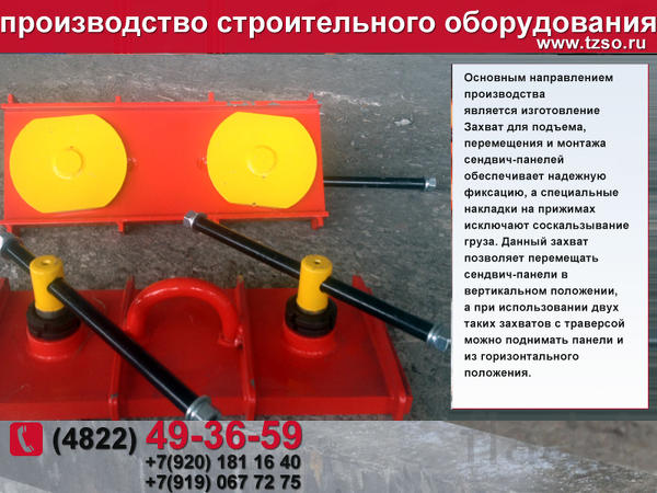 захват для монтажа сэндвич-панелей от Завода Строительной оснастки Ваш уверенный выбор при монтажа стеновых сэндвич-панелей.