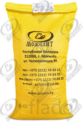ОАО «МОЖЕЛИТ» производит и реализует пищевой желатин в соответствии с ГОСТ 11293-2017. Изготавливается исключительно из говяжьего мягкого коллагенсодержащего сырья (тип Б) и имеет сертификат «Халяль» (HALAL). Желатин от ОАО «МОЖЕЛИТ» – это чистый пищевой белок животного происхождения. Представляет собой твердый измельченный продукт светло-желтого цвета, без запаха и вкуса, обладающий прекрасными влагоудерживающими и желирующими способностями, высокой прочностью и вязкостью. Является универсальным пищевым продуктом, его используют как важный связующий элемент в производстве различных видов пищевой продукции.